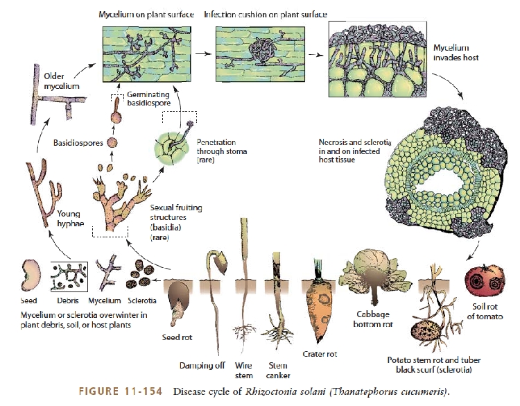 Gövde ve kök boğazı üzerinde kırmızımsı-kahverengi, çökük yaralar meydana gelir. Çıkış döneminde çökertene sebep olabilir, daha ileri dönemlerde solgunluk ve kurumalara neden olur. Yumru üzerinde siyah yada kahverenginde yüzeysel kahverengi sert siğil şeklinde gelişir.