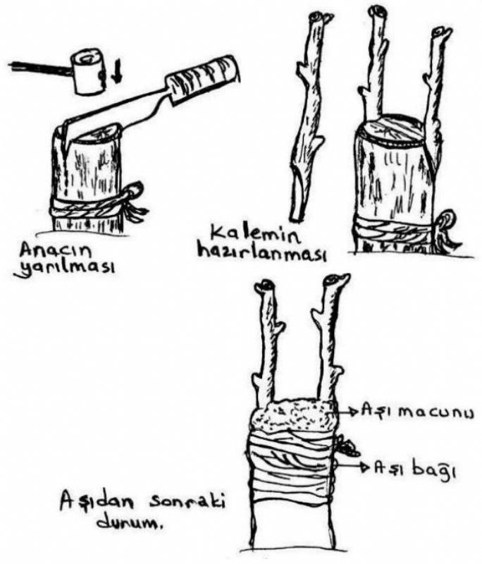a) Yarma aşı: Küçük ağaçların gövdelerinde veya büyük ağaçların ana dallarında çeşit değiştirmeye uygun olan bir aşı tekniğidir.
