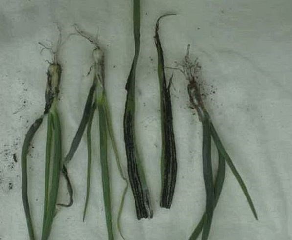 Bazen hastalığa erken yakalanan yapraklarda anormal bükülme, kıvrılma görülür. Bitkiler cüce kalır ve gelişiminin herhangi devresinde ölebilirler. Hastalığın yoğun bulaşık olduğu tarlalarda bitkiler tamamen kuruyabilir.