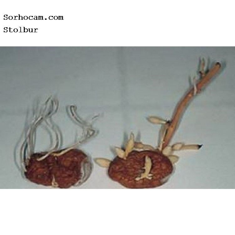 Aynı dönemde kök boğazında havai yumrular da oluşmaya başlar. Solgunlukla birlikte kökler tamamen ölür. Olgunlaşmamış yumrularda pörsüme meydana gelir. Eğer hastalıklı yumru dikilmişse çıkan bitkide ilk belirtilerden sonra solma başlar ve yumru bağlamadan çiçeklenme devresinde bitki ölür ya da ipliksi sürgün oluşur, yeşil aksam oluşmaz. Hastalığın depodaki belirtisi iplik şeklinde çimlenmedir. Kısaca, stolbur hastalığı fitoplazma kaynaklı bir bitki hastalığı olup, zararlı böcekler vasıtasıyla bulaşır ve bitkilerde büyüme bozuklukları, sararma ve verim kaybına neden olur.