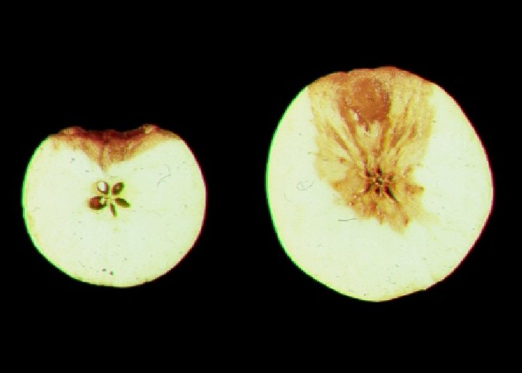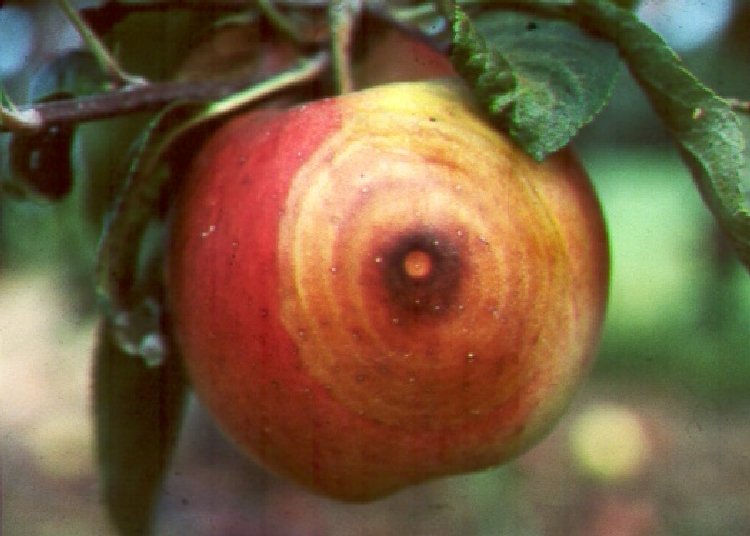 Botryosphaeria obtusa (Schwein.) Shoemaker (anamorph:Sphaeropsis malorum Berk.) fungal hastalik etmeni olup, kontrol altina alinmasa asiri meyve ve yaprak dökülmesine neden olabilir. Hastalik etmeni agaçlardaki ölü odunlarda ve mumyalasmis meyvelerde ve yere dökülen meyvelerde kis gibi olumsuz kosullarini geçirir. Bahar aylarinda sporlar yagmurlar ile gözlere bulasir, gözler kabarmaya baslayinca bu sporlar çimlenir, çiçek organlarini infekte eder ve gelismekte olan meyvenin çekirdek yuvasina dogru ilerler. Meyveler olgunlasincaya kadar fungus burada dormant olarak kalir, daha sonra meyve eti dokularina dogru gelisir ve sert kahverengi çürüklük simptomlarini, özellikle çekirdek yuvasinda olusturur. Çiçek taç yapraklari döküldükten sonra, meyveler devamli olarak infeksiyonlarina maruz kalabilir. Çiçek taç yapragi dökülmesinden sonra meydana gelen infeksiyonlar kabarik, siyah sivilce benzeri belirtilere neden olur ve daha sonraki sezonlarda bu lekeler siyah, düzensiz bir sekilde ve kirmizi bir hale ile kusatilir. Meyve infeksiyonlari için optimal sicakliklar yaklasik 18 ile 24 °C arasinda degismektedir. Bu sicakliklarda infeksiyonlarin olusmasi için infeksiyon yerinin islakligi en az 9 saat devam etmelidir. Yaprak infeksiyonlari ise gözlerin kabarmaya baslamasi ile birlikte görülür ve yaz aylarinda, yaprak islakligi devam ettigi sürece ortaya çikabilir. Yaprak infeksiyonlari kahverengi, yuvarlak, 1 kaç mm çapinda ve mor bir hale ile çevrilmistir. Yaprak infeksiyonlari 26 °C de 4- 5 saat yapraklarin islak kalmasi ile ortaya çikmaktadir. Bazen yaprak ayni fungusun sekonder infeksiyonlar ile karsilasir ve daha büyük ve düzensiz lekelerin olusmasina neden olur. Fungal etmen ates yanikligi tarafindan hastalandirilan ya da öldürülen dallarida enfekte der ve ölü dallar üzerinde spor üreten yapilarini olusturur. Burada olusan sporlarda meyve ve yesil aksamlari yaz boyunca enfekte etmeye devam eder.