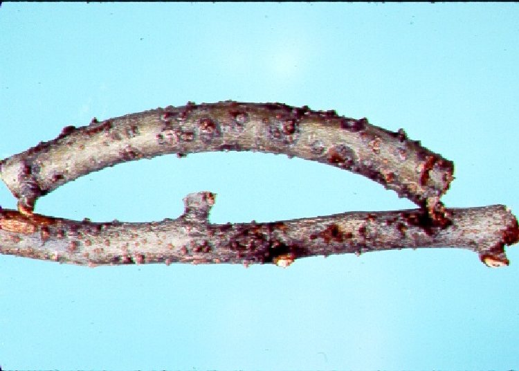 Bahar aylarinda sporlar yagmurlar ile gözlere bulasir, gözler kabarmaya baslayinca bu sporlar çimlenir, çiçek organlarini infekte eder. Gelismekte olan meyvenin çekirdek yuvasina dogru ilerler ve meyveler olgunlasincaya kadar fungus burada dormant olarak kalir. Daha sonra meyve eti dokularina dogru gelisir ve sert kahverengi çürüklük simptomlarini, özellikle çekirdek yuvasinda olusturur. Çiçek taç yapraklari döküldükten sonra, meyveler devamli olarak infeksiyonlarina maruz kalabilir. Çiçek taç yapragi dökülmesinden sonra meydana gelen infeksiyonlar kabarik, siyah sivilce benzeri belirtilere neden olur ve daha sonraki sezonlarda bu lekeler siyah, düzensiz bir sekilde ve kirmizi bir hale ile kusatilir. Yaprak infeksiyonlari ise gözlerin kabarmaya baslamasi ile birlikte görülür ve yaz aylarinda bu infeksiyonlar yaprak islakliginin devam ettigi sürece ortaya çikmaktadir. Yaprak infeksiyonlari kahverengi, yuvarlak, 1 kaç mm çapinda ve mor bir hale ile çevrilmistir. Bazen yaprak ayni fungusun sekonder infeksiyonlar ile karsilasir ve daha büyük ve düzensiz lekelerin olusmasina neden olur.