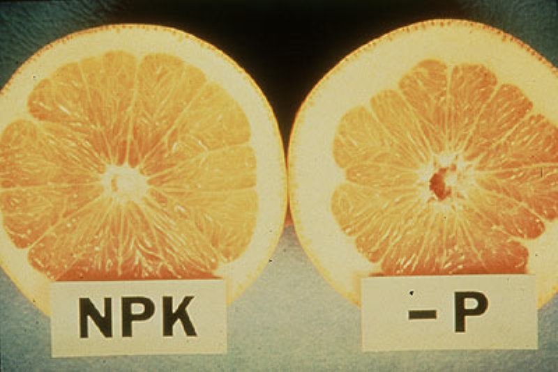 Bitkilerde Fosfor Noksanlığında koyu gri yeşil yaprak ve gövde-sürgün büyümesi ve yaprak boyutunda engellenme (küçülme),tomurcuklarda ölüm,meyve sertliğinde azalma, verimde düşüş gözlemlenmektedir. Ayrıca;
