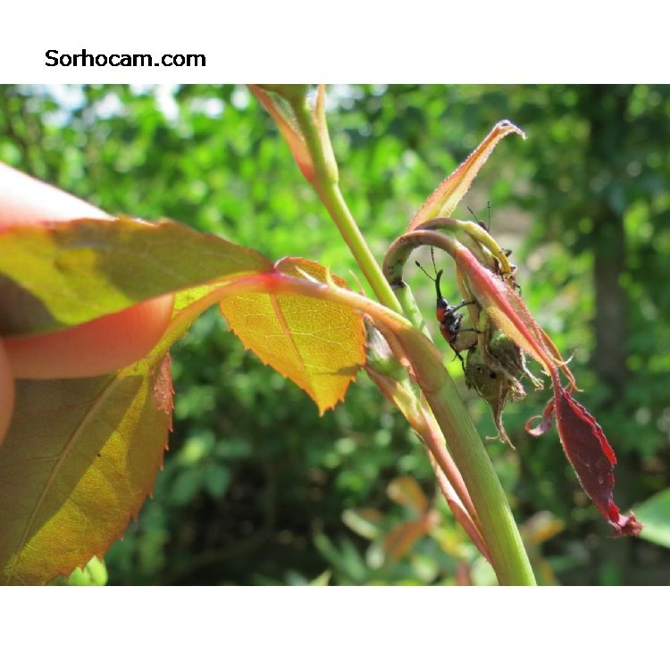 Larvaları bir yıllık sürgünlerin öz kısmında yaşar ve bu sürgünleri tamamen kuruturlar. Yumurta konan sürgün uçları bir iki saat sonra porsur, aşağıya doğru bükülür ve solmaya başlarlar. Kuruma larvanın aşağı doğru ilerlemesine paralel olarak ilerler. Burdur ve Isparta Bölgesi yağ güllerinde önemli bir zararlıdır. Zararlının Burdur, Isparta, Ankara, Konya Adana, Afyon ve Diyarbakır gül alanlarında bulunduğu tespit edilmiştir.