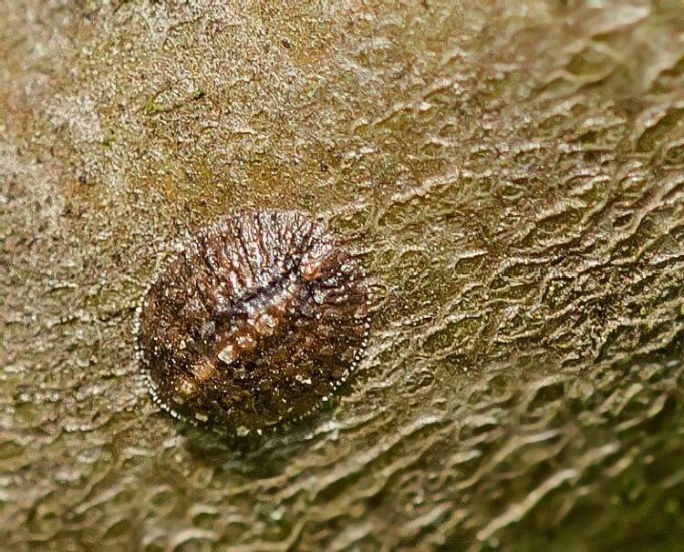 Ergin dişi geniş, oval, yarım küre şeklinde kabarıktır. Kabuğun üst kısmında, yanlara doğru iki çift kabarcık bulunur. İlkbaharda, elma ağaçlarının çiçek açtığı dönemlerde larvalar çıkar. Yumurtadan çıkan larvalar, yapraklara geçerek yerleşir ve burada yaprak özsuyunı emerek beslenirler. Genç dişiler yapraklarda kısa bir süre beslendikten sonra, haziran sonu temmuz başlarında sürgün ve ince dallara taşınır ve burada yerleşirler.