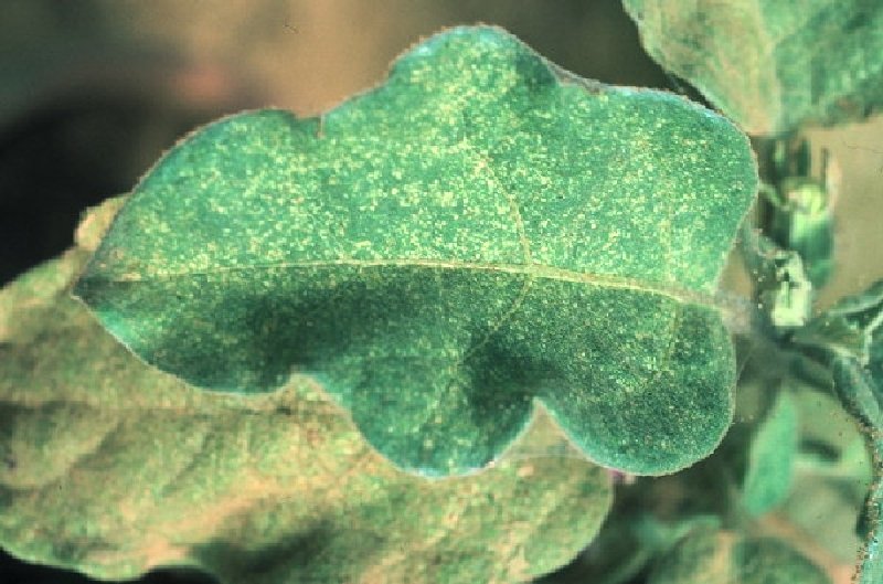 Yapraklarda beneklenme, sararma, kuruma ve dökülme görülür.