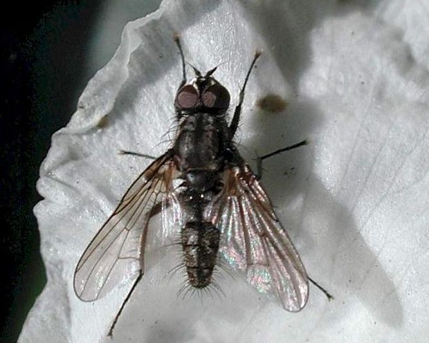 Ergin 5-6 mm boyunda ve genel renk görünümü gri olan bir sinektir. Yumurta ve larvaları beyaz renklidir. İlkbaharda, iklim koşullarına bağlı olarak, mart mayıs aylarında çıkan erginler yumurtalarını gruplar halinde genç bitkilerin kök boğazı civarındaki toprak çatlaklarına bırakılır. Yumurtadan çıkan larvalar kök boğazının epidermisi altına girerler, burada galeri açarak gelişmelerini sürdürür. Yılda 2-3 döl verirler.