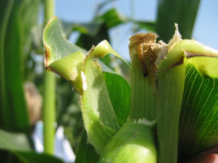 Larvalar, mısır bitkisinin kök bölümü dışındaki tüm organlarında zarar yapmaktadır. ilk dönem larvaların birbiri üzerine sarmal yaprakları (helezon yaprak) delip içeri girmesiyle başlar. Sonra gövde, koçan ve erkek organda delik ve galeriler açarlar. Açılan galeriler ve beslenme nedeniyle bitkinin zayıflamasına, gövde ve