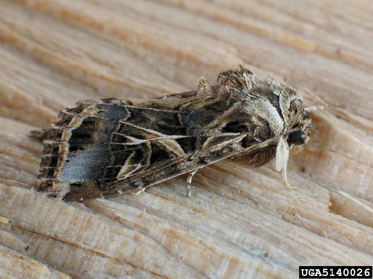 Kelebeklerin kanat açıklığı 35-40 mm dir. Kanatlarında gri kahverengi zemin üzerinde karışık açık sarı çizgiler vardır. Gelişmesini tamamlamış larva 45-50 mm boyunda koyu kahverengi veya siyahımsı kadife görünüştedir. Başının üzerinde üçgen şeklinde kahverengi bir leke vardır. Kelebekler gündüz kuytu yerlerde saklanır, gece aktiftirler. Larvalar yaprakta meyve üzerinde bulunur.