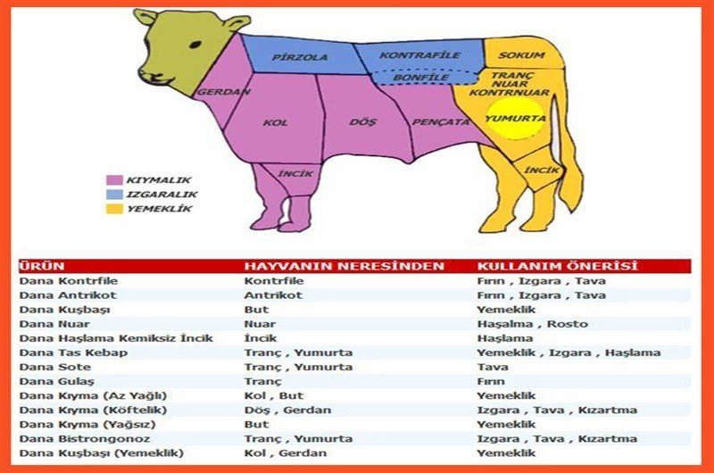 Dana Eti Haritası (Gerdan, Bonfile, İncik, Sokum)