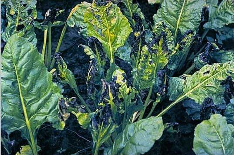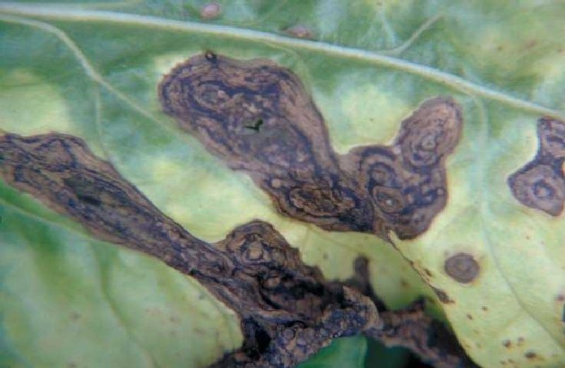 Belirtileri: Yapraklar kenardan ve uç kısmından başlayarak damarlar arası kahverengileşir ve ölür. Bu kısımların dokusu üzerinde siyah bir tabaka oluşur (Mantarın konidi ve konidi taşıyıcıları)
