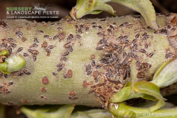 Ergin dişi bireyler virgül şeklinde 2-3.3 mm uzunluğunda grimsi kahverengi bir kabukla kaplıdır. Yumurtadan yeni çıkmış olan larva, şeffaf, beyaz renkte ve hareketlidir. Kısa bir süre bitki üzerinde dolaştıktan sonra, ana kabuğunun çevresinde veya uygun buldukları yere hortumlarını bitki dokusuna sokarak beslenmeye başlar ve kendilerini buraya tespit ederler. Kışı, yumurta halinde dişi kabuğunun altında geçirir. İlkbaharda 1. döle ait ilk hareketli larva çıkışı nisan sonu-mayıs başlarında elma ağaçlarında çiçek taç yapraklarının ¾'ü döküldüğü zaman olur.