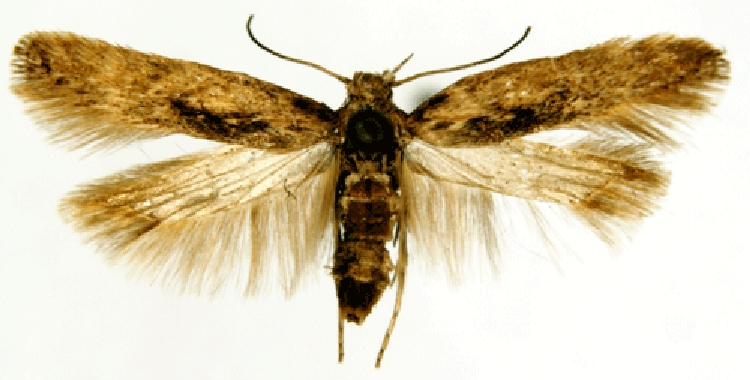Kelebeğin kanat açıklığı 10-12mm'dir. Kanatları çok dar olup antenleri vücuttan daha uzundur. Ön kanatlar griye çalan sarı renktedir. Kanat üzerinde 2-3 adet iri ve çok sayıda küçük siyah lekeler bulunur. Kanat kenarları gölgelidir. Arka kanatlar saydam ve gri renkte saçak tüyleri uzuncadır. Yumurtalar ovalimsi ve krem rengindedir. Olgun larva 10-12mm uzunluğunda baş ve prothorax'ı siyahımsı kahverengi, vücut ise pembemsi, yeşilimsi renktedir. Her vücut halkalarında siyah nokta biçiminde birkaç leke ve duman renginde kısa kıllar bulunur.
