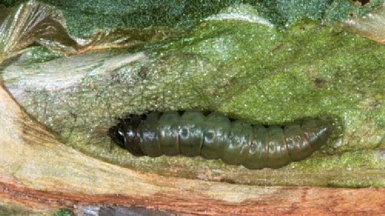 Larvalar tütün bitkisinin yapraklarında, yaprak sapında ve gövdede galeriler açarak beslenirler. Alt ve üst epidermise dokunmazlar. Asıl zararlarını bitkinin genç dönemlerinde yaparlar. Yaprağın bir bölümünü veya tamamını yiyerek yaprağın saydam bir görünüm almasına yol açarlar.Daha sonraları buralar kuruyarak parçalanır. Tütün bitkisinin geliştiği dönemlerde daha çok dip yapraklarda görülürler. Bir yaprakta birden fazla larvada bulunabilir. Gövdede beslenmeleri sonucu dışa doğru tipik şişkinlikler oluşturur. Bu nedenle zararlıya tütün gebesi denmiştir. Zararları genellikle orantılı nemin ve sıcaklığın yüksek olduğu yer ve yıllarda daha da artar.