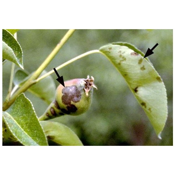 Genç meyveler üzerinde kadifemsi görünüşte isli ve siyahımsı kahverengi lekeler oluşur. Şiddetli durumlarda meyvenin tüm yüzeyi lekelerle kaplanabilir ve gelişemeyerek erkenden dökülürler. Büyümeye devam eden meyvelerde ise şekil bozuklukları oluşur. Sürgün ve dallarda ilkbaharda sivilceye benzer püstüller oluşur. Birleşen püstüller sıracaları oluşturur. Şiddetli durumlarda sürgünler kurur