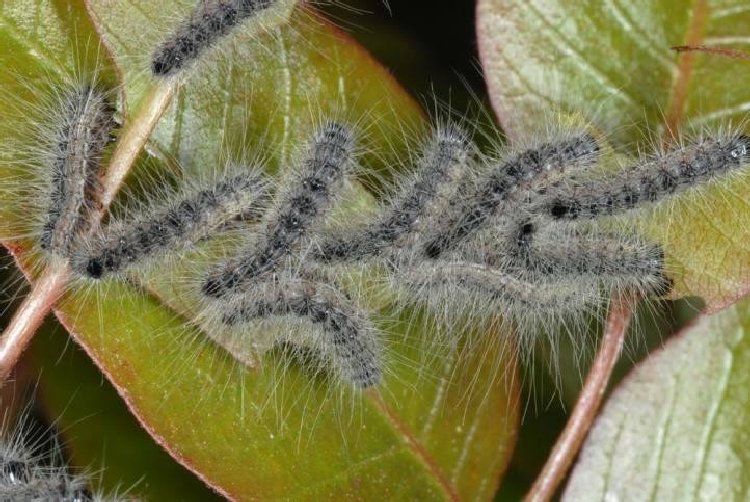 Yeni çıkan larvalar toplu olarak sürgün, meyve gözü ve yeni oluşmuş yaprakları yediğinden ağacın çiçek açmasına, meyve bağlamasına ve yeni sürgün vermesine engel olurlar. Larvalar gelişmeleri süresince, sürgünden sürgüne ve ağaçtan ağaca geçerek zararlarına devam ederler. Larvalar ikinci ve üçüncü dönemden sonra yaprakları sap ve ana damar kalacak şekilde tamamen yerler. Yaprakları tamamen yenmiş bir ağacın meyveleri dökülür, gelişmesi durur, gelecek yılın meyve ve sürgün gözleri de oluşmaz. Böylece ağaçlar meyve veremeyeceği için, verim yönünden zarar %100 olur.
