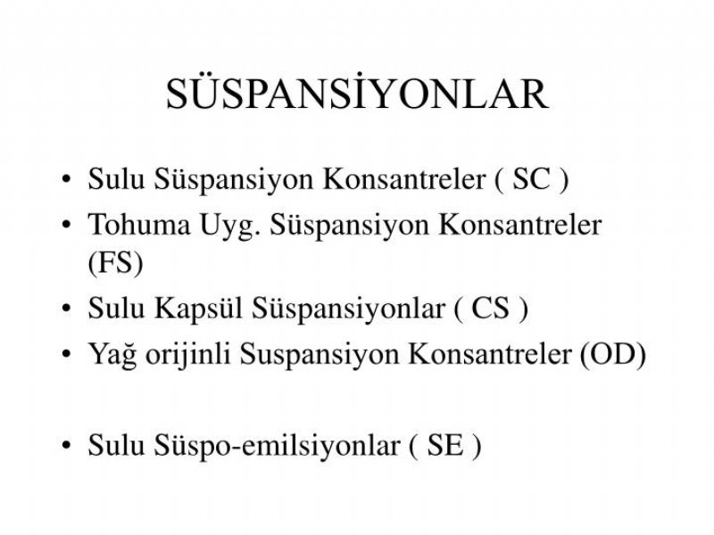 | SC | Süspansiyon Konsantre | Sıvı | Su ile karıştırılır |