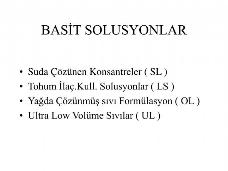 | SL | Suda Çözünebilen Konsantre | Sıvı | Su ile tamamen çözünür |