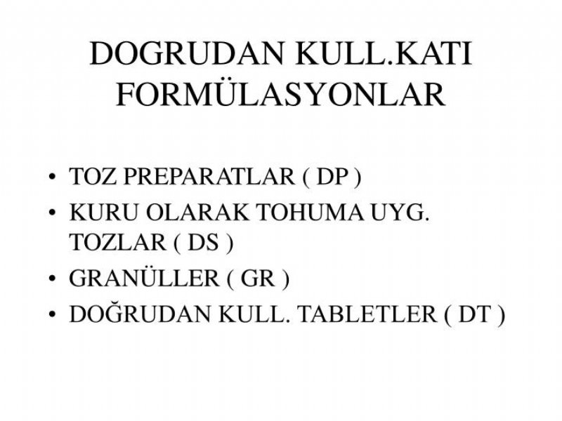 Özellikleri: Uygulama sırasında doğrudan toz olarak verilir.