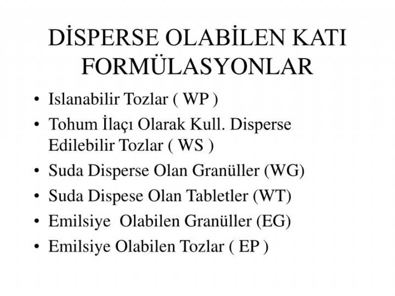 | WG/WDG | Suda Dağılabilir Granül | Granül | Su ile karıştırılır |