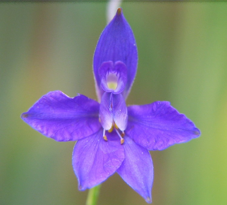 Çiçekleri salkım bir saçak şeklinde uzun bir sapa dizilmiş mor, açık mavi veya leylaki mor renkte beş oval taç yaprak ve ortada döllenme tozlukları bu-lunur. Meyveleri tüylü bir kapsül şeklinde, içindeki 3-5mm çapında, grimsi siyah renkte ve üzeri pürtüklüdür.