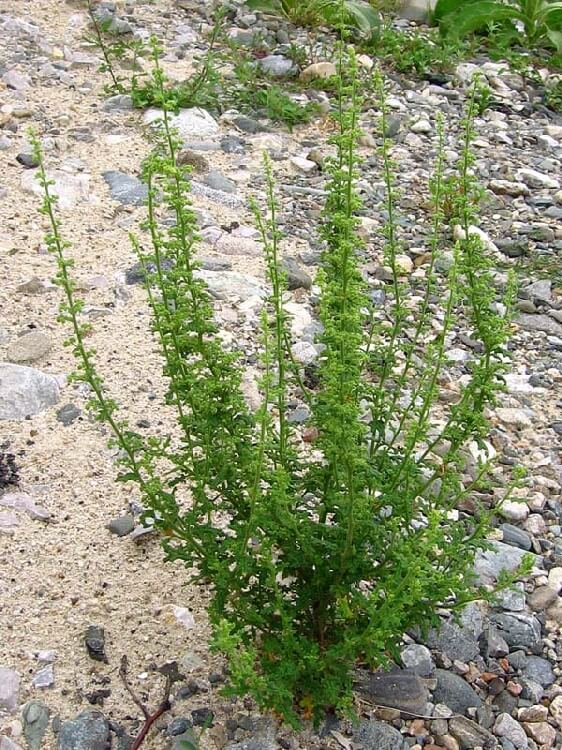 Yaprakları değişik şekilde sıraya dizilmiştir. Yaprak diziliş şekli eğrelti otunu andırmaktadır. Alt yaprakları kısa saplı, üst yaprakları sapsız gövdeye oturmuş olup, geniş bir mızrak şeklinde, kenarları kertiklidir. Yaprakları şekil itibariyle çınar ağacı yaprağını da andırmaktadır. Bitki toprak üzerinde yüzeysel gelişim gösterir. Her yaprağın dibinden bir dal çıkmaktadır. Bitki yetiştirildiği toprağa göre yeşil, esmer veya kahverengimsi renkte olabilir. Çiçekleri bitkinin üst kısmındaki yaprak diplerinden çıkan saplar üzerinde oldukça çok çiçeğin dizilmesi ile oluşmuştur. Yetiştirildikleri toprağa göre yeşil, esmer ve kızıl renklerde olabilmektedir.