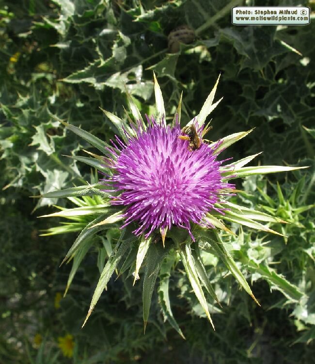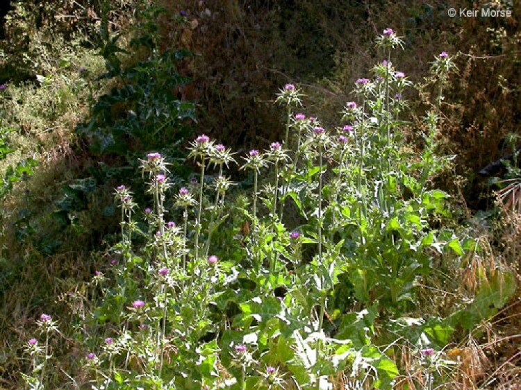 Meryem Dikeni Morfolojisi: Tek yıllıktır, kışı yeşil olarak geçirebilir. Boyu 1,5 m'ye kadar ulaşabilir. Sap dik ve dallıdır. Yapraklar parlak yeşil olup uzun elips şeklindedir. Orta yapraklar parçalıdır. Çiçekler erguvan şeklinde olup, çiçek tablaları aşağıya doğru eğiktir. Meyve uzun yumurta şeklindedir