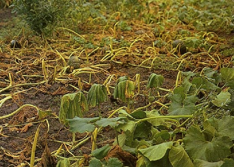Olumsuz koşulları kabakgil olmayan bir çok yabani bitkide de (Solidago nemoralis Ait., S. altissima L. ve Sorghum halepense L.) geçirebilir. İlkbaharda bitkiler üzerinde beslenen böcekler bakteriyel patojeni bünyesine almakta ve daha sonra sağlıklı bitkilere taşımaktadır. Böcekler hastalık etmenini taşımakla kalmamakta, yapraklar üzerinde beslenirken açmış olduğu yaralardan da bakterinin bitkiye girmesinde yardımcı olmaktadır. Bitkiye giren bakteriyel etmen bitkinin iletim (ksilem) demetlerine geçer, orada çoğalır ve buradan tüm bitkiye yayılır. Bakteri iletim demetlerinde çoğalırkende, bitkinin su taşıyan sistemlerini etkilemekte ve bundan dolayıda bitkide solgunluk meydana gelir. Bitkilerde infeksiyon ise sadece bitki üzerinde ince bir su katmanı olduğu zaman gerçekleşir. Solgunluklar infeksiyondan 6-7 gün sonra görülmeye başlar ve 1 ya da 2 ay içerisinde kuruyarak tüm bitkiler ölür.
