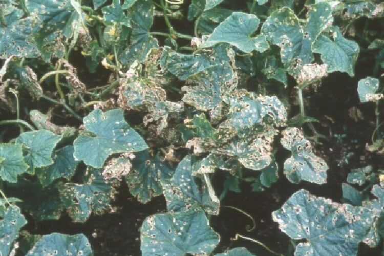Pseudomonas syringae pv. lachrymans (S.&B.) Y.D.&W. hıyar, kavun, karpuz ve kabaklarda köşekli yaprak lekesi hastalığına neden olur. Dayanıklı varyetelerin daha fazla yetiştirildiği hıyar bitkilerinde hastalık daha az yaygındır. Bakteri hastalanmış bitki artıkları ve toprakta 2 yıl canlılığını koruyabilir. Bakterinin tohum kökenli olduğu da bilinmektedir. Bakteri sağlıklı bitkilere yaralardan ve bitkideki doğal açıklardan giriş yapabilir. Gün içerisinde %90 üzerinde nisbi nem ve yağmur formundaki nemler infeksiyon ve hastalığın gelişmesi için gereklidir. İki hafata boyunca devam eden kuru havalar hastalığı durdurmaktadır.