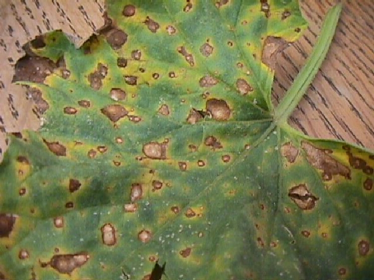 Alternaria cucumerina (E.&E.) Elliot Alternaria alternata (Fr.:Fr.) Keissl.f. sp. cucurbitae Alternaria hastalık etmenleri kavunların en yaygın hastalıklarından biridir, fakat karpuz, kabak ve hıyaralarıda etkilemektedir. Hastalık genelde geç sezonlarda yaprak yanıklığı olarak ortaya çıkmaktadır. Yaprak yanıklığı hastalıklı bitki artıklarında klamidispor olarak ya da misel olarak olumsuz koşulları geçirir ve toprakta 1 yıldan daha uzun süre canlılığını korur. Ayrıca tohum üzerinde de bulunabilir. Konidiler baharda ortaya çıkar ve primer inokulum kayanağı olurlar. İnfekteli bitkilerde oluşan konidiler tekrarlı olarak yeni enfeksiyonlara neden olabilir. İnfeksiyon ve hastalık gelişimi yüksek nisbi nem ve 20-32 ° C arasındaki sıcaklıklar uygundur.