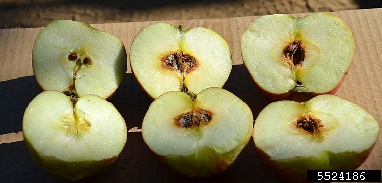 Elma yapraklarında, önce açık, daha sonra koyulaşan portakal renkte dairesel halka şeklinde yaprak lekelerine neden olur. Bu etmen, hasattan önce veya sonra meyveyi enfekte edebilir. Meyvelerin olgunlaşma başlangıcında fungus meyveyi enfekte edebilir. Hasada yakın ileri derecedeki çürüklüklerde meyve eti siyaha dönüşür ve süngerimsi bir yapı alır.