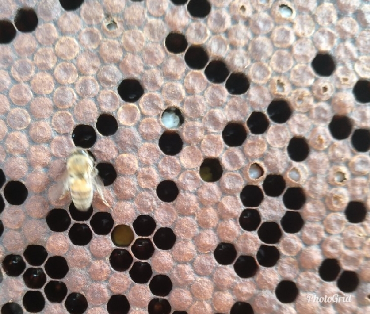 Hücre dibinde çürümüş ve koyu kahverengi bir pelte haline gelmiş olan larva, ucu sivri birşeyle tutulup çekildiği zaman 3-5 santim uzunluğunda sakız gibi uzar.