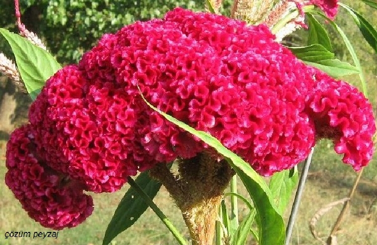 Tanımı: Geniş şeridimsi, oval biçimli yaprakları vardır. Dikine gelişen kırmızımsı bir gövdesi bulunur. Yaz mevsiminde açan çiçekleri deve kuşu tüylerinin biçimini andırır. Çiçekleri, kırmızı, sarı, beyaz renklerindedir.