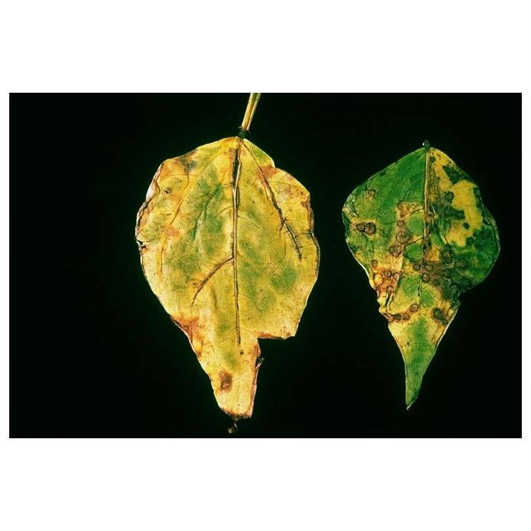Gerçek yapraklardaki lekelerin merkezi kahverengi, çevresi sarımsı yeşil haleyle çevrilidir.Kapsül üzerindeki lekeler yuvarlak koyu yeşil, ıslak görünümlüdür. Gövde ve kapsüllerdeki lekelerde bazen krem renkli bakteriyel bir akıntı görülebilir.Özellikle beyaz tohumlu çeşitlerde tohum kabuğu üzerinde sarı renk almış alanlar görülebilir.