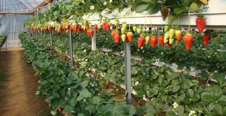 2. Yetiştirme ortamı, yerden belirli yüksekliklerdeki yataklara doldurularak çilek yetiştiriciliği yapılır.