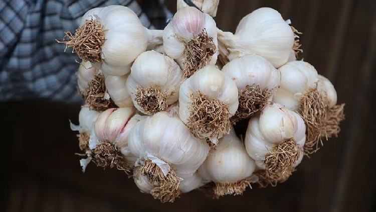 Sarımsaklarda hasat bitkinin yapraklarının iyice kurumaya başladığı dönemde yapılır. Sarımsaklar hevenkler halinde asılarak depolanacaksa hasatta yaprakların tam olarak kuruması beklenmez, bitkilerde örmeye imkan verecek şekilde solduğu dönemde yapılır. Hasat genellikle çapa ile yapılmaktadır. Sıravari dikim yapılmış ise soğan hasat makineleri ile de hasat yapılabilir. Hasat edilen sarımsaklar kurumak üzere birkaç gün süre iel tarlada bırakılır. Sonra yapraklar ovularak uzaklaştırılıp depolanır veya pazarlanır. Hasat miktarına etki eden faktörlerin başında diş seçimi gelmektedir. Mümkün olduğu kadar az sayıda ve daha iri diş meydana getiren, düzgün şekilli, çeşidin özelliğini taşıyan başlar tohumluk materyal olarak alınmalı ve 18-20 ºC sıcaklıklarda saklanmalıdır.
