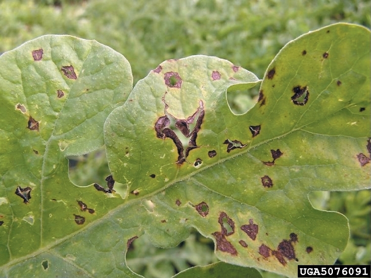 Bu lekeler zamanla birleşip büyürler ve düzensiz bir şekil alırlar. Daha sonra buruşup parçalanmaları sonucunda yapraklar ve daha ileriki dönemde bütün bitki kuruyarak ölebilir. Yaprak sapları üzerindeki lekeler uzunumsu esmer ve hafif çukurdur.