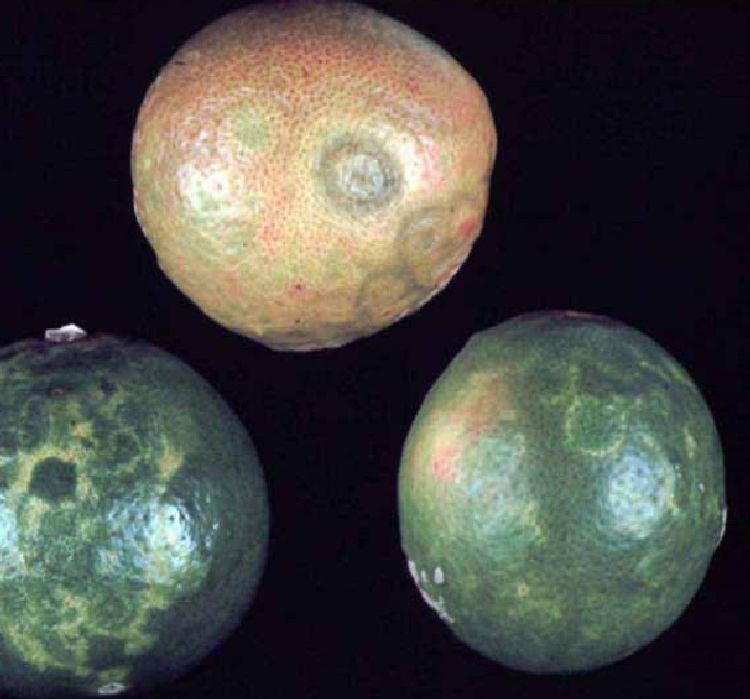 Olgun yaprak ve olgunlaşmamış meyvelerde halka şeklinde ve çeşitli büyüklükte açık sarı ve beyaz renklerde lekeler oluşur. Olgun yaprakların alt yüzünde kahverengi lekeler oluşur. Psorosis B tipi daha şiddetlidir ve ağacı kısa sürede öldürür.