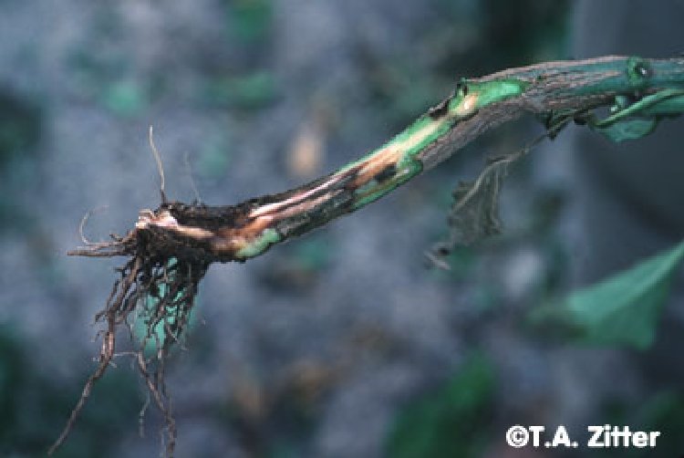 Hastalık bitkinin değişik dönemlerinde ve organlarında görülebilir. Erken dönemde enfeksiyon olduğunda fideliklerde çökerten olarak etkili olur. Daha ileri dönemlerde bitkilerin kök boğazında önceleri koyu yeşil zamanla kahverengi siyaha dönüşen bir renk değişimi meydana gelir. Bu renk değişimi kök boğazını kuşak gibi sarar, enfeksiyon kök bölgesine ulaşır, kök kabuğu kahverengi bir renk alır ve çürür. Bu şekilde enfeksiyona uğramış olan bitkiler solamaya başlar, normal sulama ve bakım işlemleri yapılsa da bitki kendini toparlayamaz.