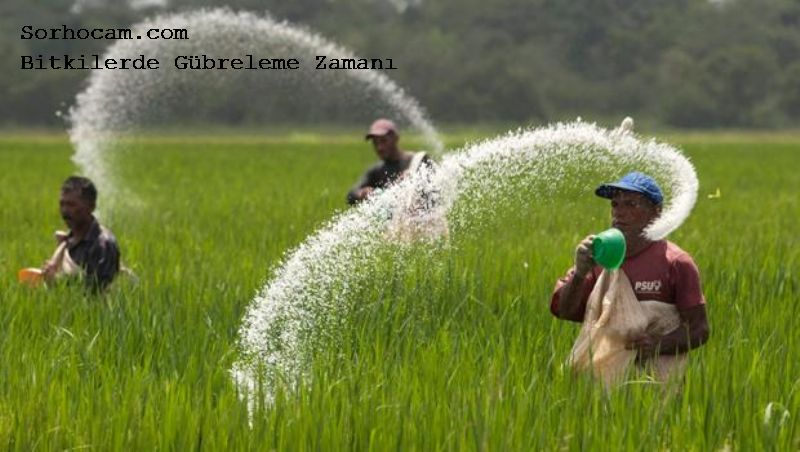 Bu nedenle bazı bölgelerde yetiştirilen belli bitkiler için verilmesi gerekli olan gübrenin tamamı bir defada ve genellikle ekimden verilirken bazı hallerde bu miktar bitki gelişmesinin çeşitli dönemlerinde olmak üzere birkaç defada verilmektedir. Gübrelerin çok erken veya çok geç verilmesi halinde yararlılıkları da büyük ölçüde azalır. Gübre verme zamanı konusunda üzerinde durulması gereken en önemli konulardan birisi tohumun çimlenmesi sırasında toprakta yeteri kadar bitkiye yarayışlı besin maddesi bulunduracak şekilde gübreleme zamanını ayarlamaktır. Aksi halde gübrelemeden beklenen başarı çok yüksek olmayabilir.Gübrenin toprağa uygulama zamanı toprağa, iklime ve yetiştirilen bitkiye bağlı olarak değişir. Toprak sahip olduğu fiziksel, kimyasal ve biyolojik özellikleriyle gübrenin uygulama zamanını önemli ölçüde etkiler.