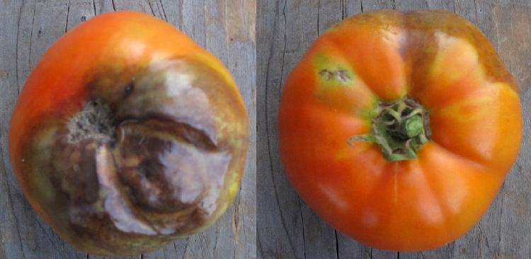 Mildiyö Hastalığı; İlk belirtiler yaprak ve gövdede üstten bakıldığında soluk yeşil renkte büyük, daha sonra esmerleşen sınırları belirsiz lekelerdir. Rutubetli havalarda yaprağın altına bakıldığında grimsi renkte, ince tüylü bir misel tabakası meydana geldiği görülür. Meyvede ise sapa bağlı kısma yakın küçük, gri kahverenginde lekeler meydana gelir. Bu lekeler süratle büyüyerek kesin hudutları belli olmayan kahverengi benekli çürüklük halini alır.