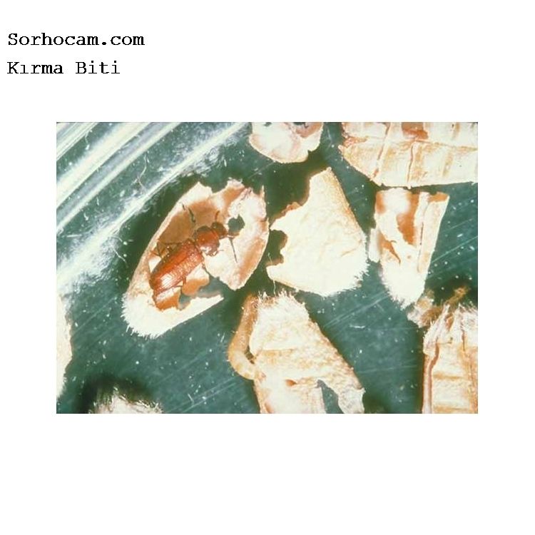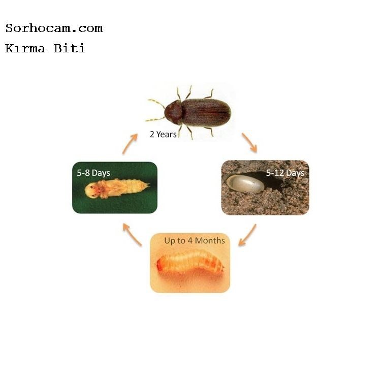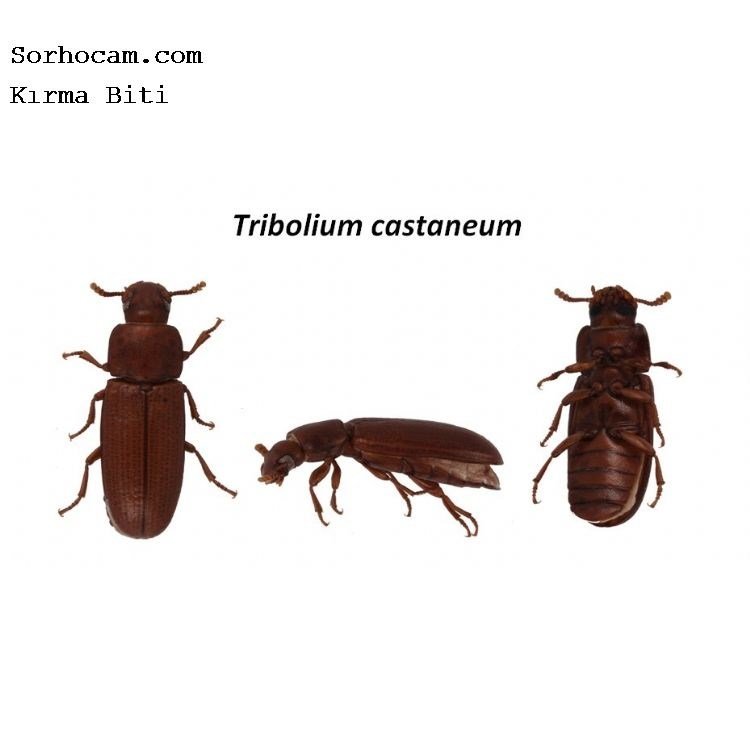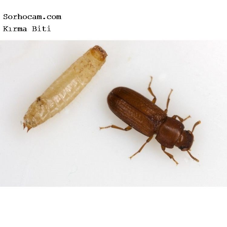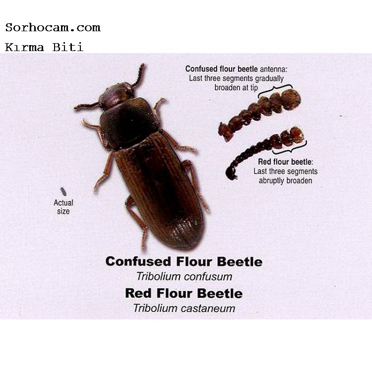 Ergin parlak koyu kırmızı renkli, 3.5-4.0 mm boyundadır. Larvalar olgunlaştığında 5-7 mm boyunda sarımsı kahve renkli bir hal alır. Erginlerin yaşama süresi ortalama 1 yıldır. Ergin dişi yaşadığı sürece 300-400 adet yumurta bırakır. Gıda ortamına bırakılan yumurtalar, kabuklarında yapışkan bir madde olması nedeniyle gıda ile örtülüdür. Normal koşullarda gelişme süresi 46-60 gündür. Her iki tür yılda 3-4 döl verir.