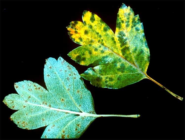 Diplocarpon mespili (Sorauer) Sutton = Fabraea maculata Atk. (anamorph: Entomosporium mespili (DC.) Sacc.) fungal hastalik etmeni olup, ilk olarak yaz baslarinda yaprak lekesi olarak hastalik kendini belli eder. Siddetli olarak etkilenen meyve agaçlarinda yapraklar agostosun ortasi ya da sonuna dogru dökülür. Bir kaç yil içerisinde hastaliktan zayif düsmüs agaçlar, hava kosullari ve hastalik gibi diger faktörlere karsi da hassaslasirlar. Fungal etmen yere dökülen infekteli yapraklarda kis gibi olumsuz kosullarini geçirir. Fungusun olgun spor üreten organlari bahar sonlarina dogru 1-2 hafta içerisinde sporlarini serbest birakir ve ilk infeksiyonlarini gerçeklestirirler. Hafif geçen bir kis ortamlarinda bu spor üreten üreme organlari infekteli dallarin kanserli dokularinda da gelisme gösterir.